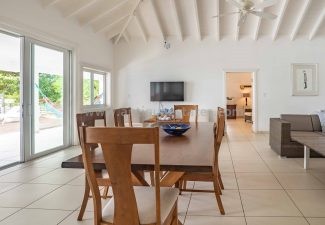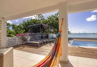 When resting at home the only ‘intrusion’ is the welcomed serene sound of the gentle breeze in the trees or the lapping sound of the tranquil waters of the Caribbean sea. The calm waters of Jolly Harbour are warm and safe for children, with stunning, gently sloping beaches of soft white sand. Two cabanas erected on the deck and fitted with comfy loungers provide perfect spots for the adults to relax while the children enjoy the large pool.