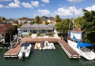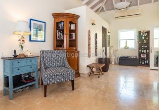 Mermaid’s Cove is an idyllic 3 bedroom, 3.5 bathroom harbour side home in Jolly Harbour. This pretty waterside retreat is conveniently built on one level with main residence, guest house and private dock. The generous terrace with a sheltered breakfast nook profits from the balmy Caribbean trade winds and is complemented by the carefully designed tropical landscaping that surrounds it.