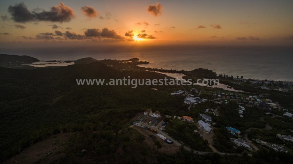 Sugar Ridge, a former sugar plantation parkland, spans 43 acres of gently sloping, fertile land on Antigua’s fashionable southwest coast. Overlooking Jolly Harbour, the development boasts stunning 360º views of the Caribbean Sea, with glimpses of Montserrat, Redonda, Nevis, and St. Kitts. The community offers 54 fully serviced home sites ranging from 0.33 to 0.84 acres, all with spectacular sea views in a private, gated setting. Plot 6, perched on a high slope, covers just above 0.38 acres and provides some of the most striking views in Sugar Ridge—a perfect spot to build your dream home.